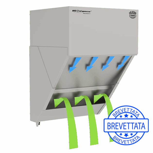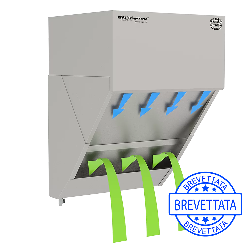 Doppia cappa a lama d’aria con compensazione centrale opzionale per aspirazione bilanciata e simmetrica
