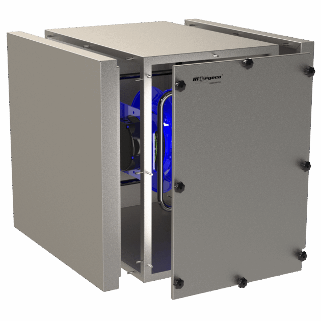 Modulo inox AISI 304 con isolamento acustico per plug-fan brushless, e filtro fumo