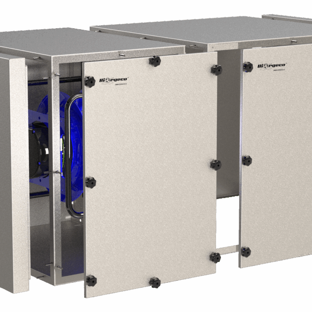 Generatore di ozono BIORGECO® applicabile ai sistemi di aspirazione per cucine in inox AISI 304.