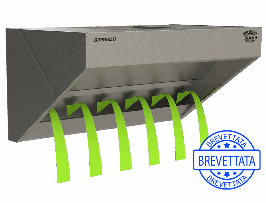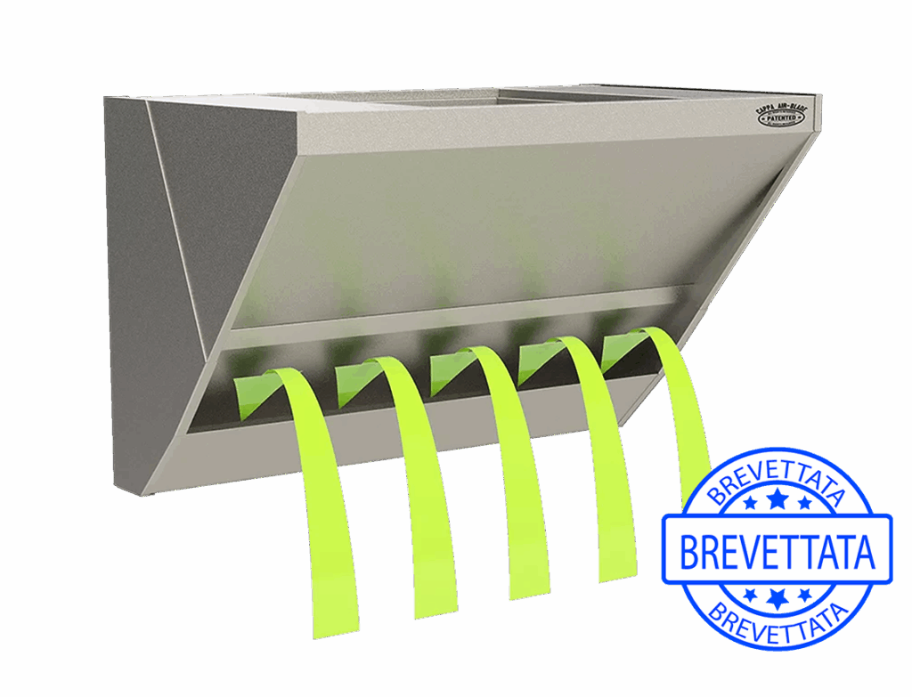 - Cattura immediata dei fumi con lama d’aria obliqua