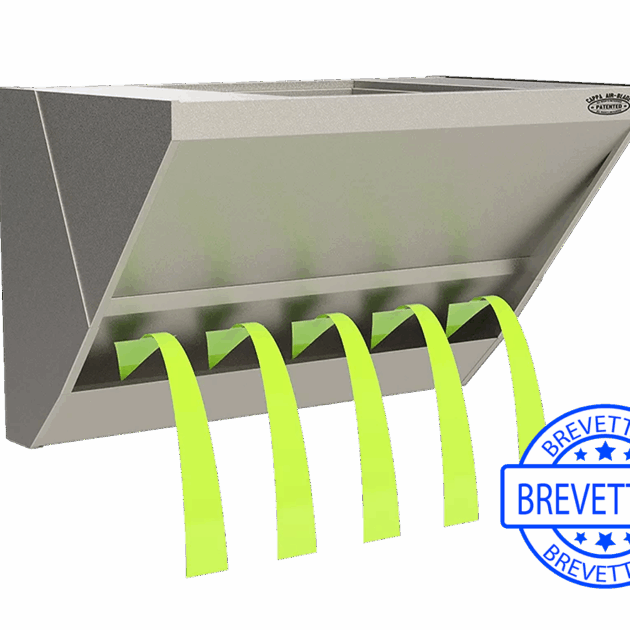 - lavora totalmente all’interno della cappa AIR-BLADE e del filtro a torre, applicabile alle cappe classiche ai forni a convenzione, per pizza e pane